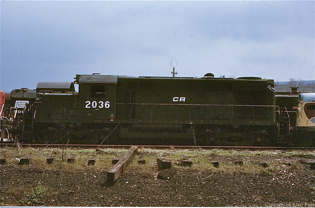 CR RS-32 2036 (ex-NYC) at the Juniata shops deadline in March, 1978.