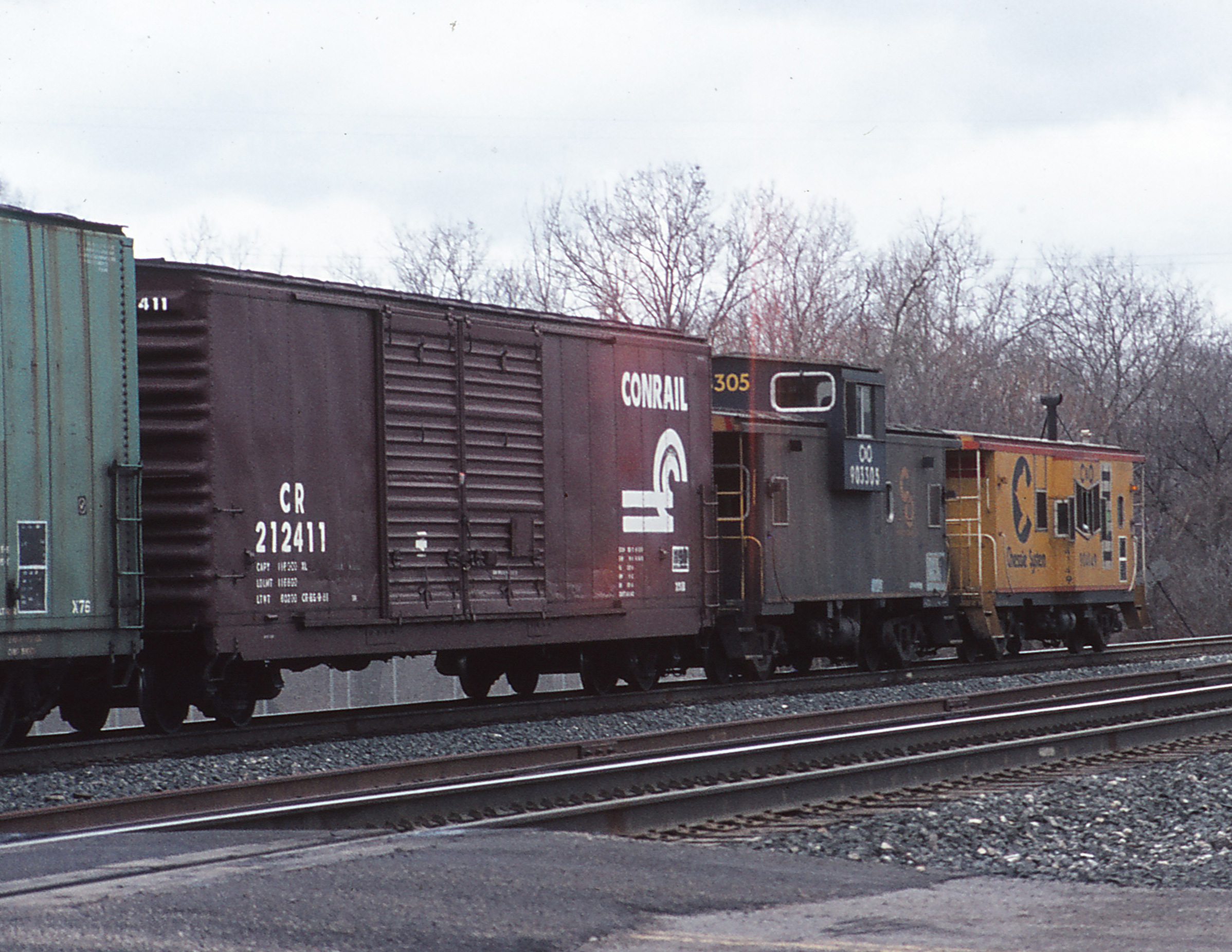CR 212411 is seen on the rear of a Chessie freight at Dayton, OH on 2/24/85. Car is ex PC 212411.