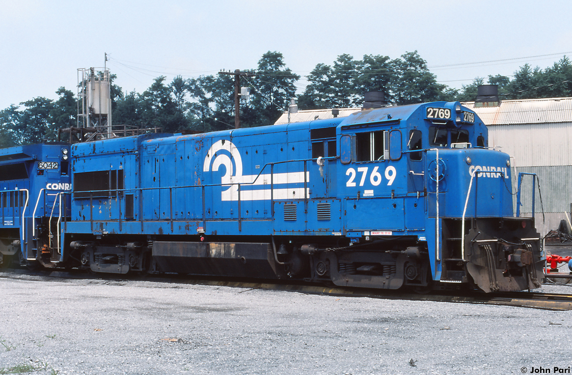 Former PC 2769 is seen at Cresson, PA on 8/12/1990. Note the lack of "CONRAIL" on the long hood.