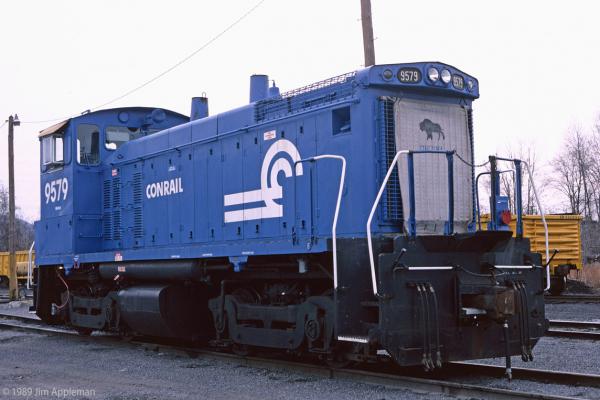 Ex-PC/CR 2771 U23B is one of two U23Bs getting ready to push an empty rail train north on rails still in place through Pine Creek Valley on the Corning Secondary to pull up another load of rail in Conrail's abandoning the line from Wellsboro Junction to Jersey Shore, PA.
