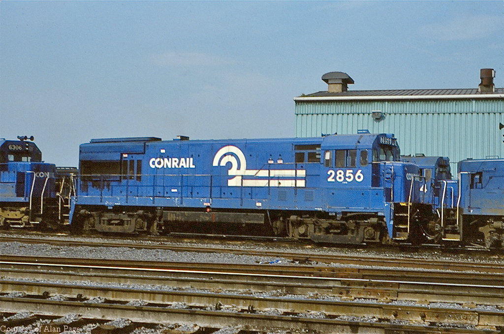CR U30B 2856 rests in a line of blue power at Selkirk in August, 1979.