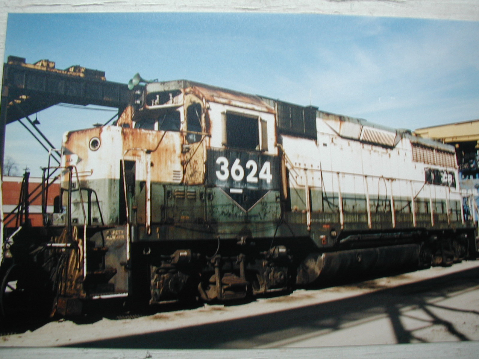 CR GP35 3624 still in it's Reading paint shown at JLS in the dead line on Dec 13th, 1994. Photo by Terry Nardella, collection of Steve Ondik