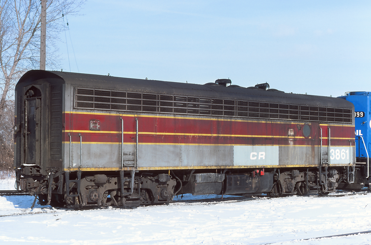 CR 3861 (former EL 7113) coupled to CR 3099 at Riverdale, IL on 1/22/77.