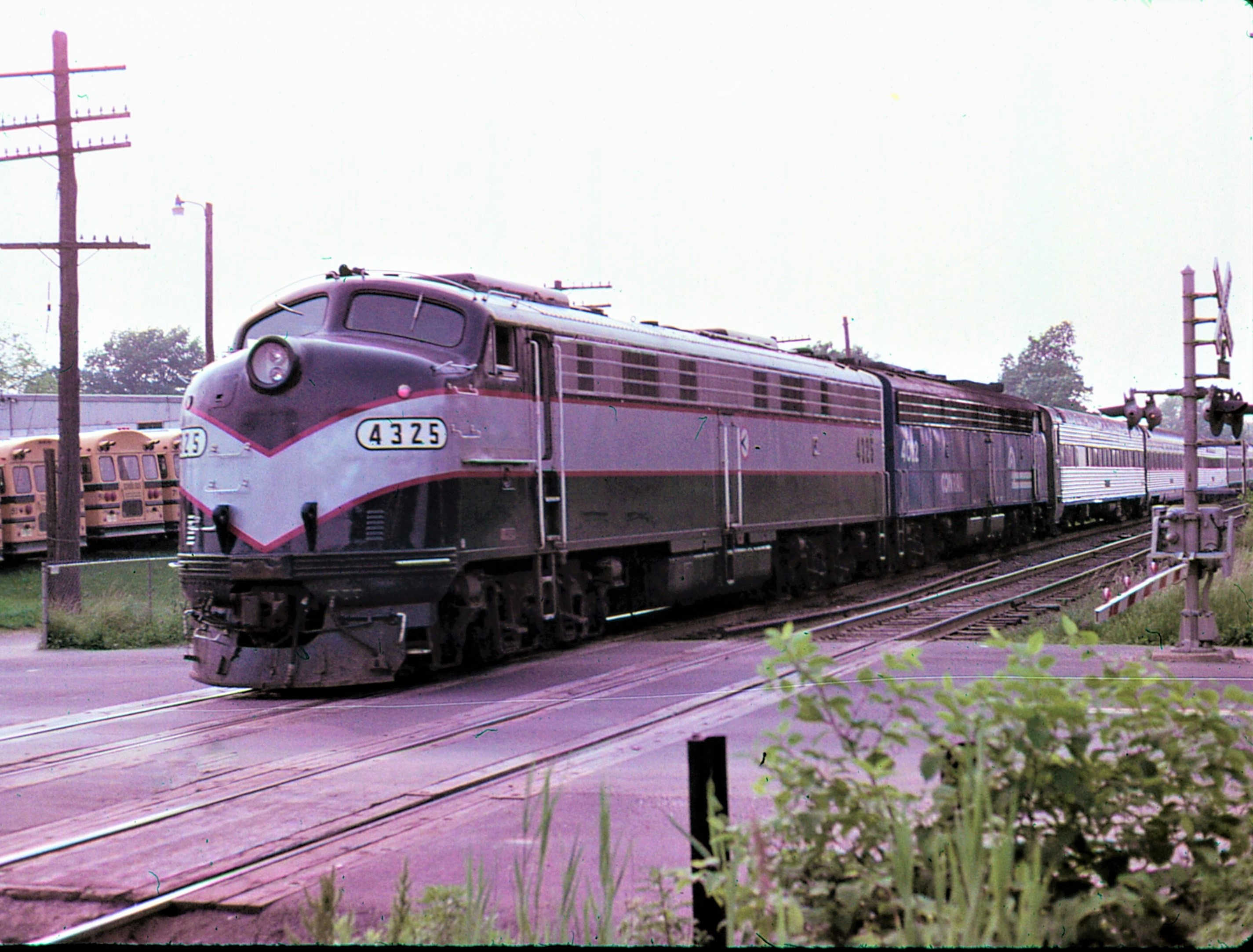 NJT E-8 #4352 & Conrail E-8 #4022 with southbound passenger. near South. Amboy, NJ. This trackage is the old New York & Long Branch division of Penn Central which is now the NJT North Jersey Coastline.  The date of this picture is Sept 23, 1982.  Ed Kaspriske & I used to go to South Amboy, NJ frequently to watch & photograph the engine change from GG-1 to diesel.  Never knew what power would be on the trains to Bay Head, NJ.