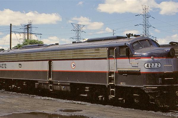 Ex-PC E-8A 4065 rests in the Juniata shops deadline in March, 1978.