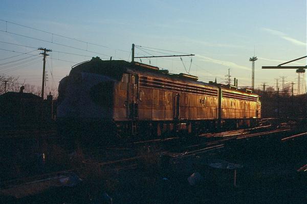 Replacing GG-1 4872, CNJ GP40P 3682 (CR roster 4111) and PC E-7A 4244 are ready to pull a string of Keystone-laden coaches past the electrified lines outside of South Amboy station in March, 1978.