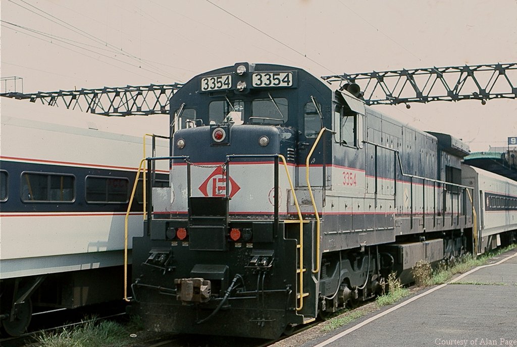 CR-operated former EL U34CH 3354 (CR roster 4154) waits to depart Hoboken in August, 1977.