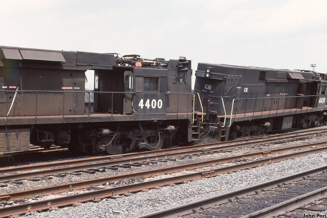 Another view of derailed E44's CR 4400 and 4439 in the Rutherford, PA yard on 5/12/1984.