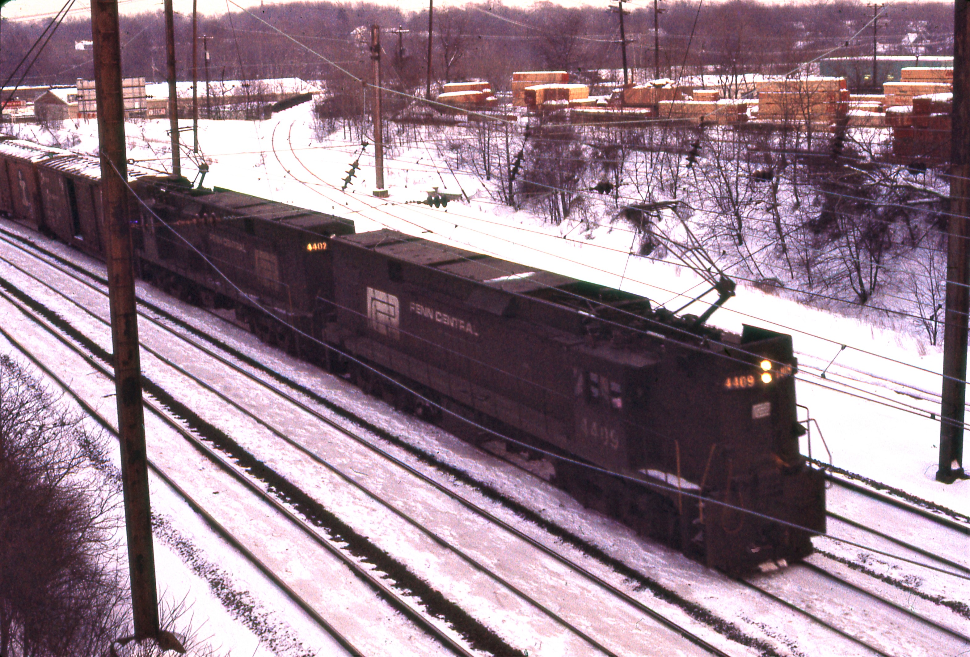 E-44 #4409 & #4407 with east bound with a freight at Metuchen, NJ.  This was late in the cold afternoon of January 12,1977