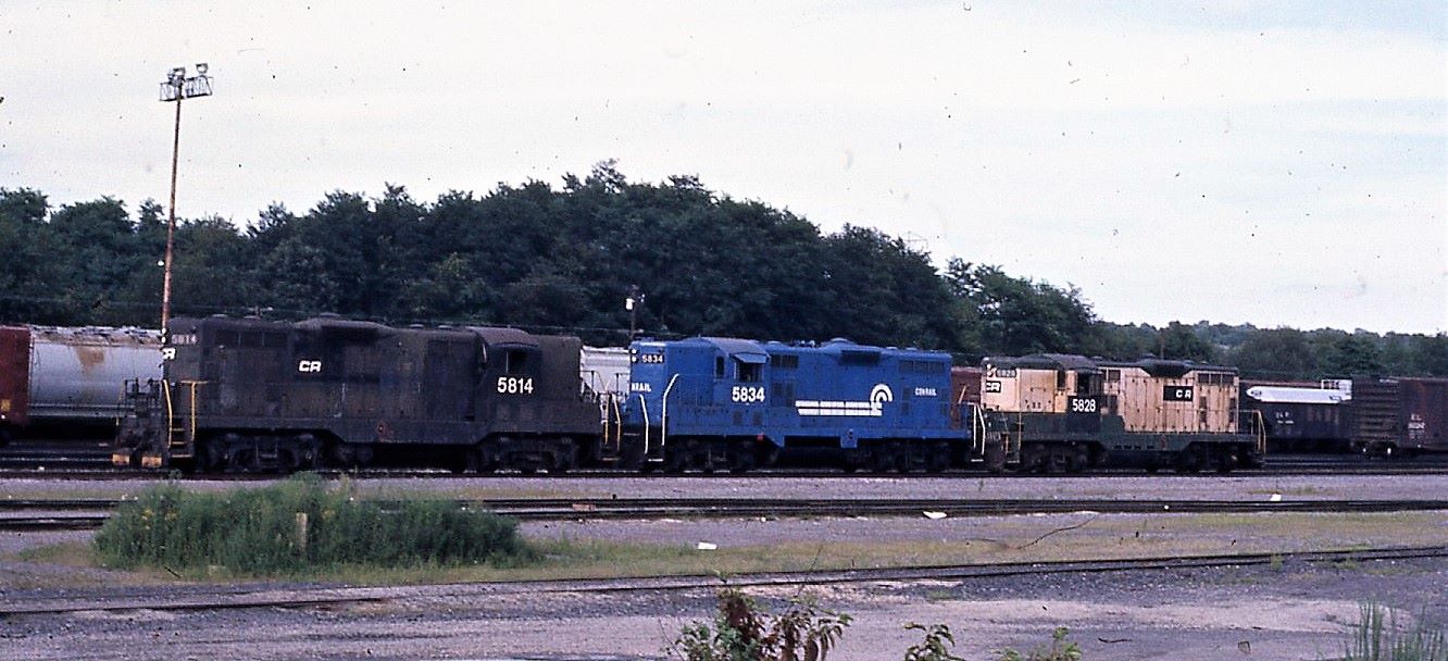 3 former Reading GP7s in various paint forms, Abrams, '77