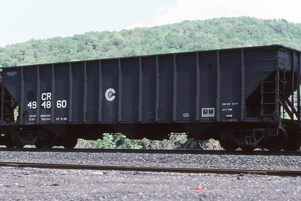 CR 494962 is seen in the consist of a WB at Altoona, PA on 11/24/96. Car is ex HLMX 10085/TWRY 10085/C&O 87666. Car was later restenciled to HLMX 494962 after the lease had expired.