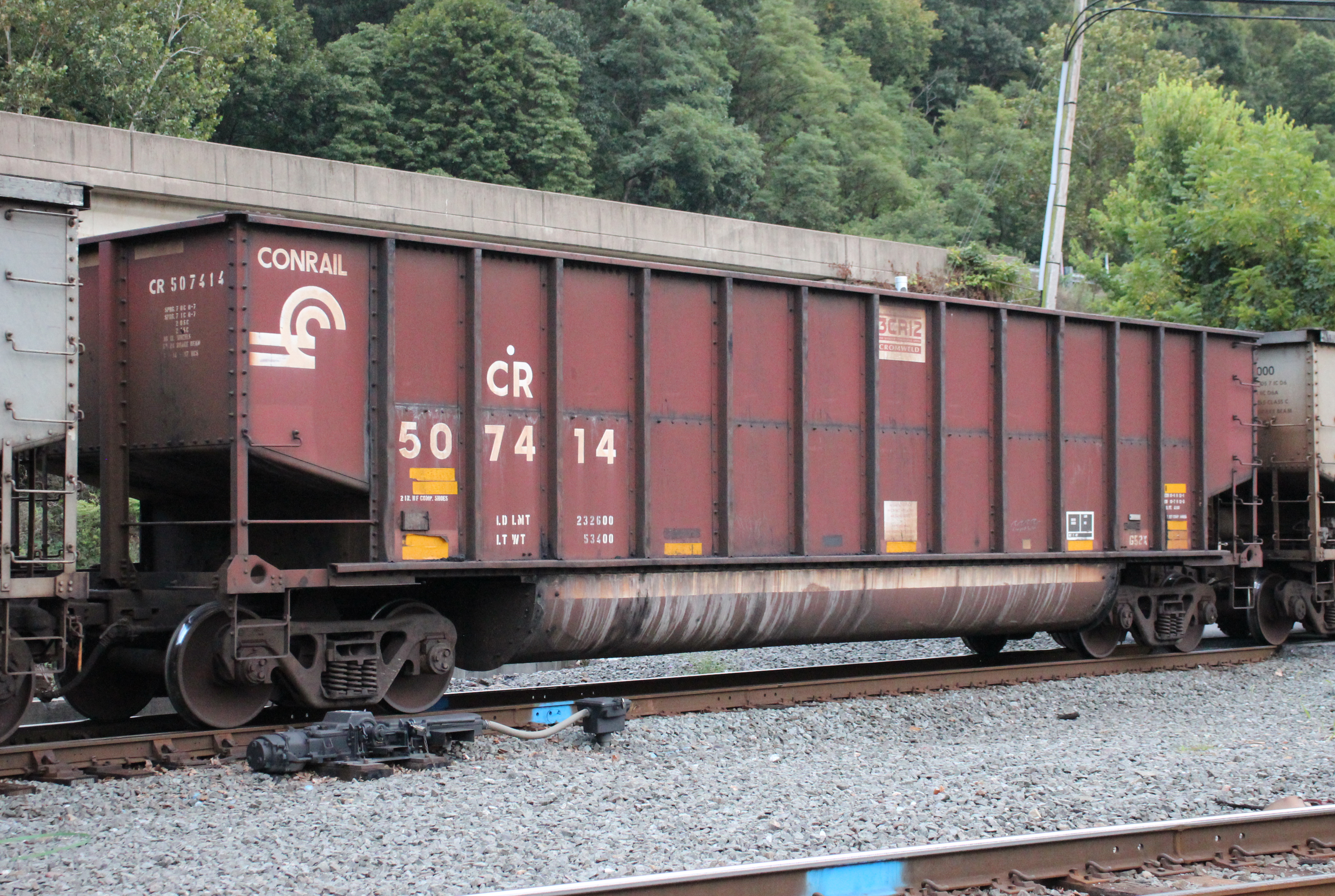 CR 507414 is seen in the consist of NS 633 at Rockville, PA on 9/6/25. Car was built 7-97 (painted 7-14-97) by HCS.