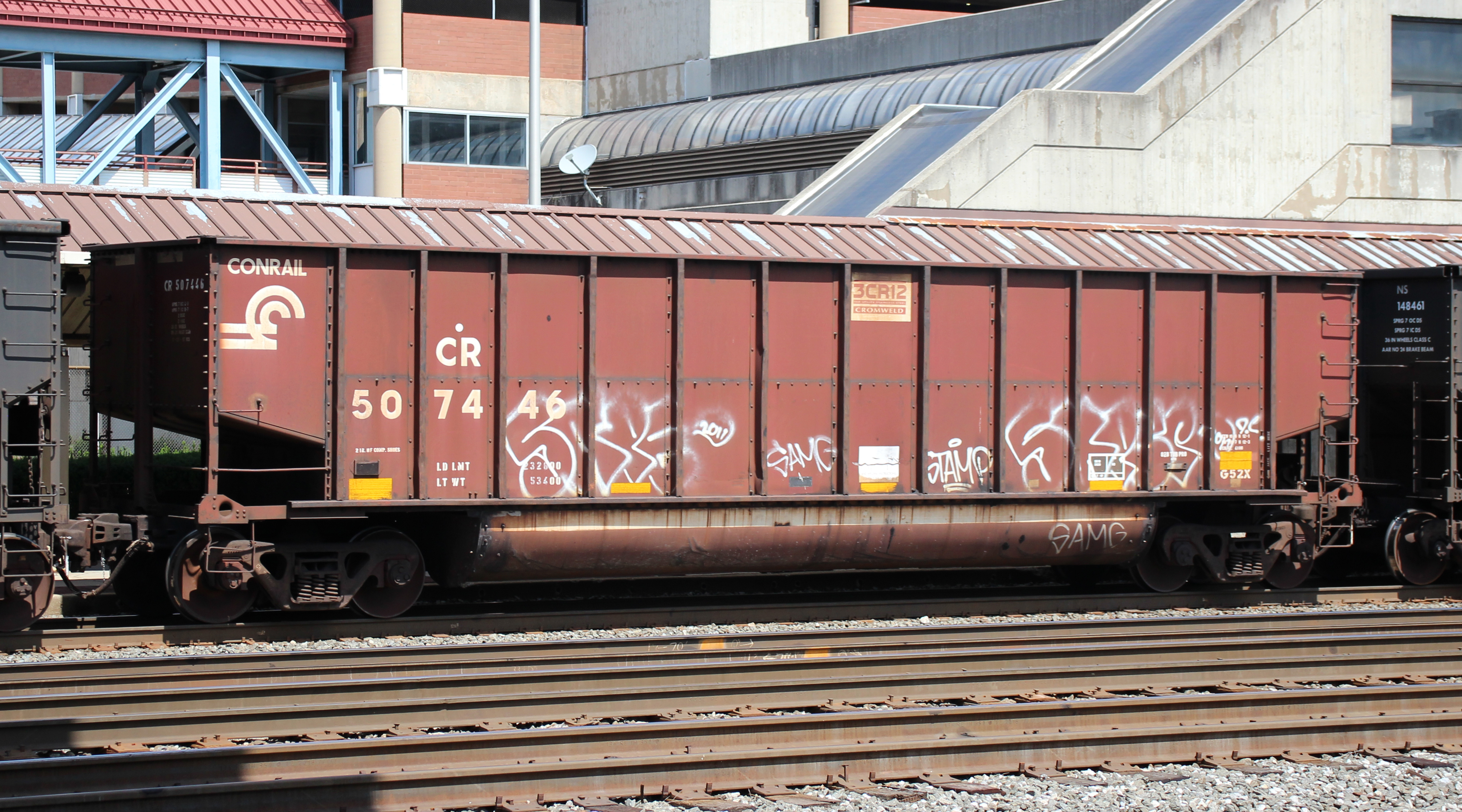 CR 507446 is seen in the consist of NS 595 at Altoona, PA on 8/11/24. Car was built 7-97 (painted 7-23-97) by HCS.