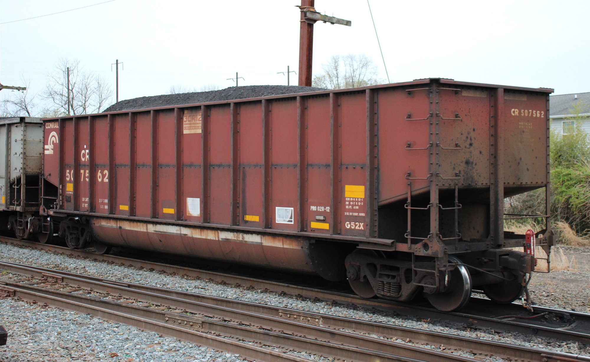 CR 507562 is seen on the rear of NS 594 at Perryville, MD on 4/8/23. Car was built 8-97 (painted 8-27-97) by HCS.
