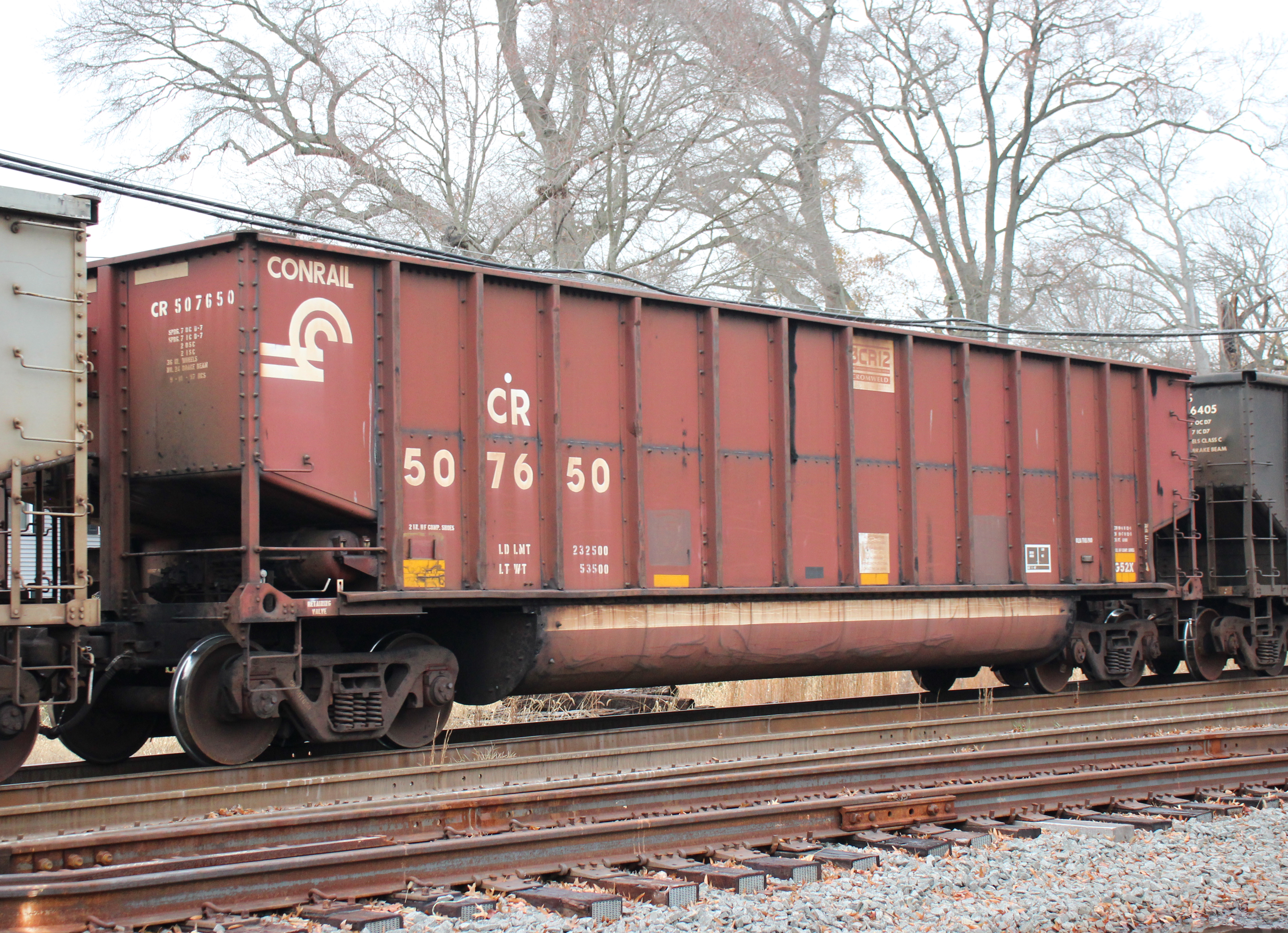 CR 507650 is seen in the consist of NS Y97 at Perryville, MD on 12/6/25. Car was built 9-97 (painted 9-18-97) by HCS.