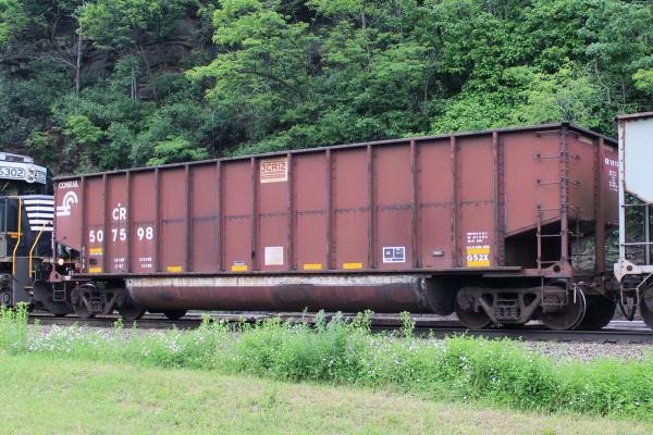 CR 507651 is seen in the consist of NS 592 at Lucknow, PA on 5/15/21. Car was built 9-97 (painted 9-18-97) by HCS.