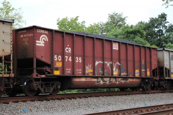 CR 507750 is seen in the consist of NS 591 at Perryville, MD on 5/4/25. Car was built 10-97 (painted 10-14-97) by HCS.