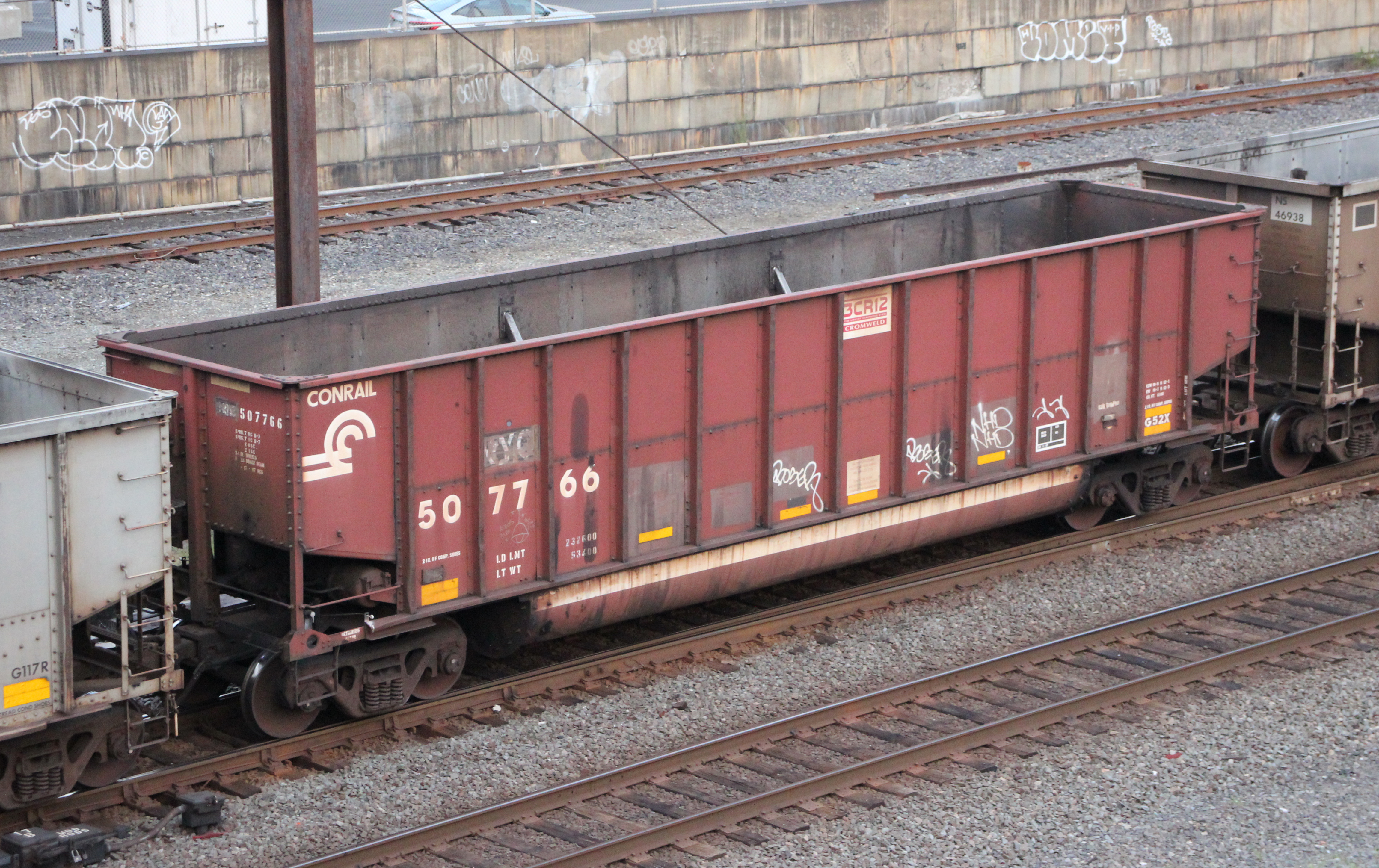 CR 507766 is seen in the consist of NS Y97 at Harrisburg, PA on 9/6/25. Car is ex NYC 507766/CR 507766 and was built 10-97 (painted 10-17-97) by HCS.