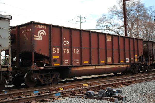 CR 507817 is seen in the consist of NS 590 at Port Deposit, MD on 3/22/25. Car was built 10-97 (painted 10-29-97) by HCS.