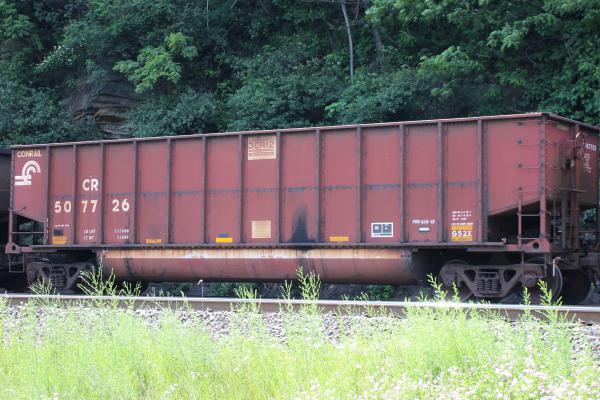 CR 507826 is seen in the consist of NS Y90 at Perryville, MD on 4/24/21. Car was built 10-97 (painted 10-31-97) by HCS.