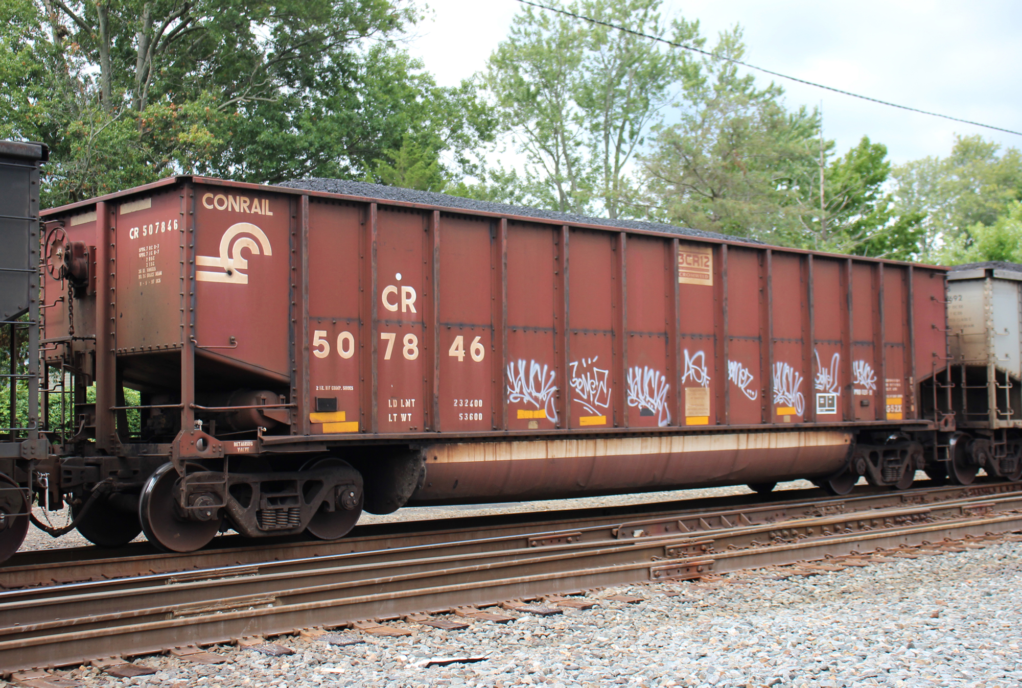 CR 507846 is seen in the consist of NS 592 at Perryville, MD on 8/21/21. Car was built 11-97 (painted 11-5-97) by HCS.