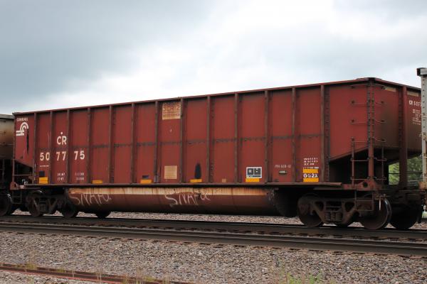 CR 507913 is seen in the consist of NS 593-16 at Duncannon, PA on 9/17/22. Car was built 11-97 (painted 11-21-97) by HCS.