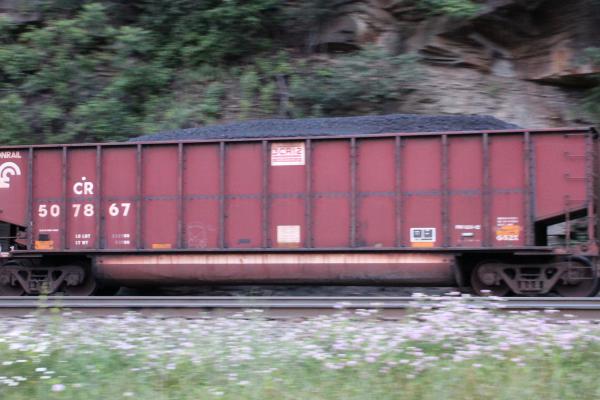 CR 507913 is seen in the consist of NS 593-16 at Duncannon, PA on 9/17/22. Car was built 11-97 (painted 11-21-97) by HCS.