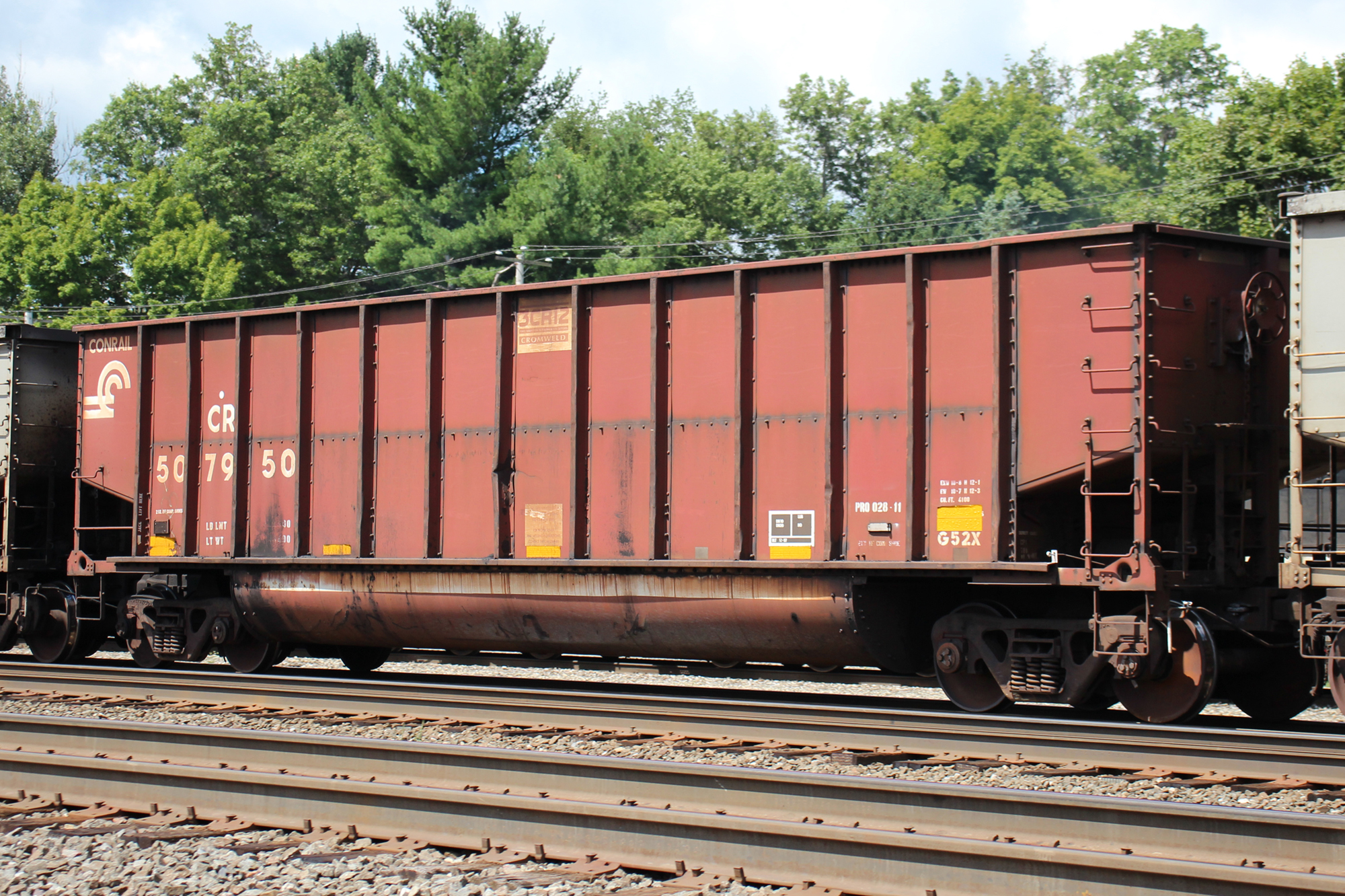 CR 507950 is seen in the consist of NS Y95 at Cresson, PA on 8/10/24. Car was built 12-97 (painted 12-5-97) by HCS.