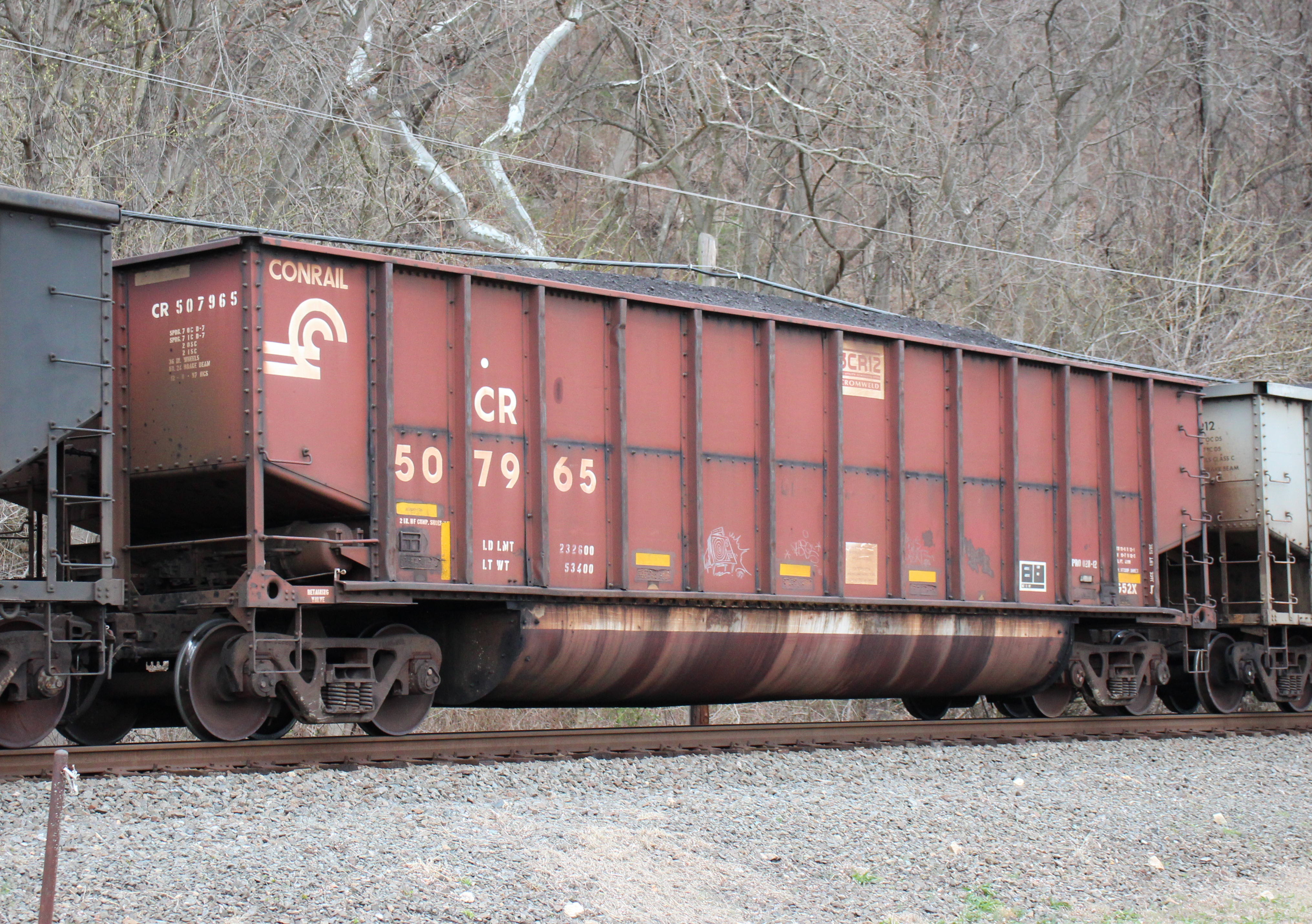 CR 507965 is seen in the consist of NS 590 at Port Deposit, MD on 3/22/25. Car was built 12-97 (painted 12-8-97) by HCS.