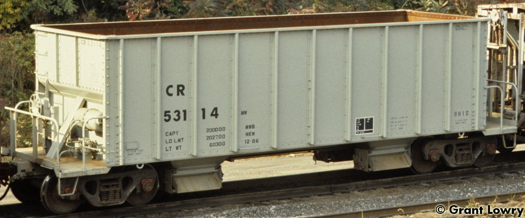 Conrail 53114 is seen at Overview, PA. Car looks brand new, built date 12/86