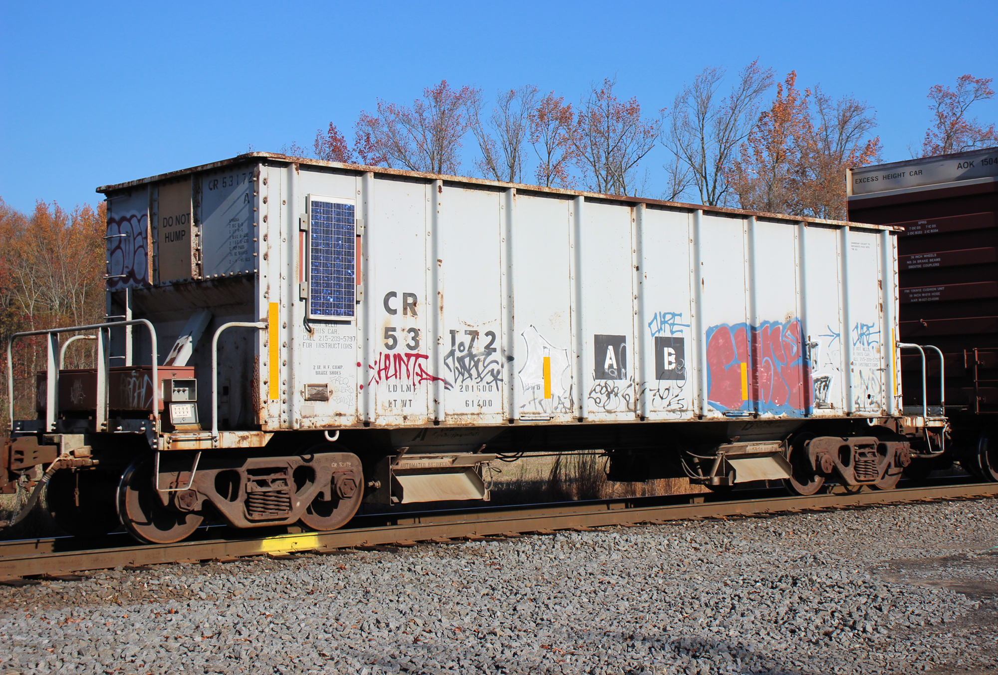 CR 53172 is seen in the consist of CSAO CA-11 at Bridgeport, NJ on 11/9/20. Car was built 1-87 by CR and was painted 2-1-95 HCS.