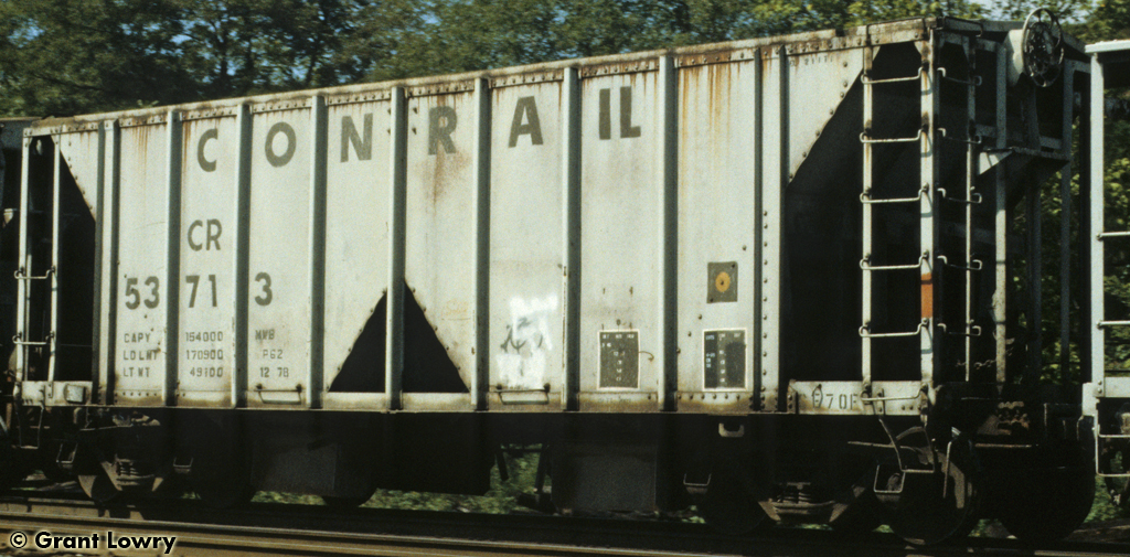 Conrail 53713 is seen at Palmyra, PA. Car is ex EL 21171 blt 5-46 rebuil 1-79.