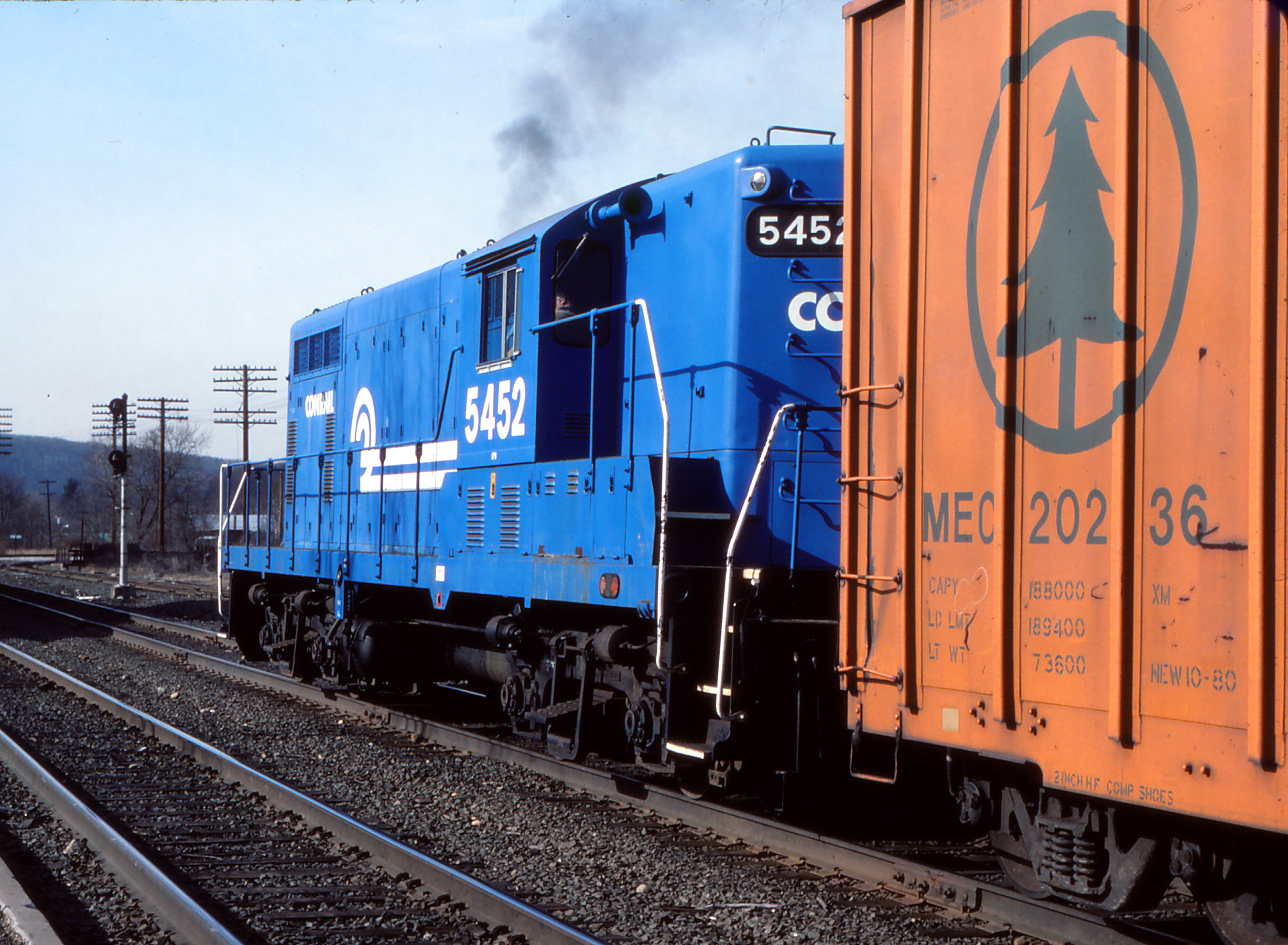 GP 8 5452 gets the board at CP 83 in Palmer, and revs up to start across the Central Vermont as it heads west to work local customers.