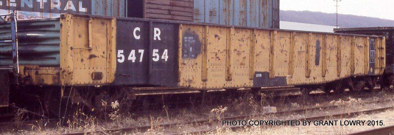 Conrail 54754 is seen at Rutherford, PA, still wearing its PRR MOW yellow colors. Car was originally built as PRR 344122 in 3-41.