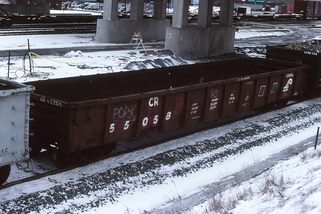 CR 55058 is seen in the consist of ALPI-4F at Altoona, PA on 3/5/99. Car is ex CR 553947/PRR unknown, built 4-59 and was deleted 1/21/10.