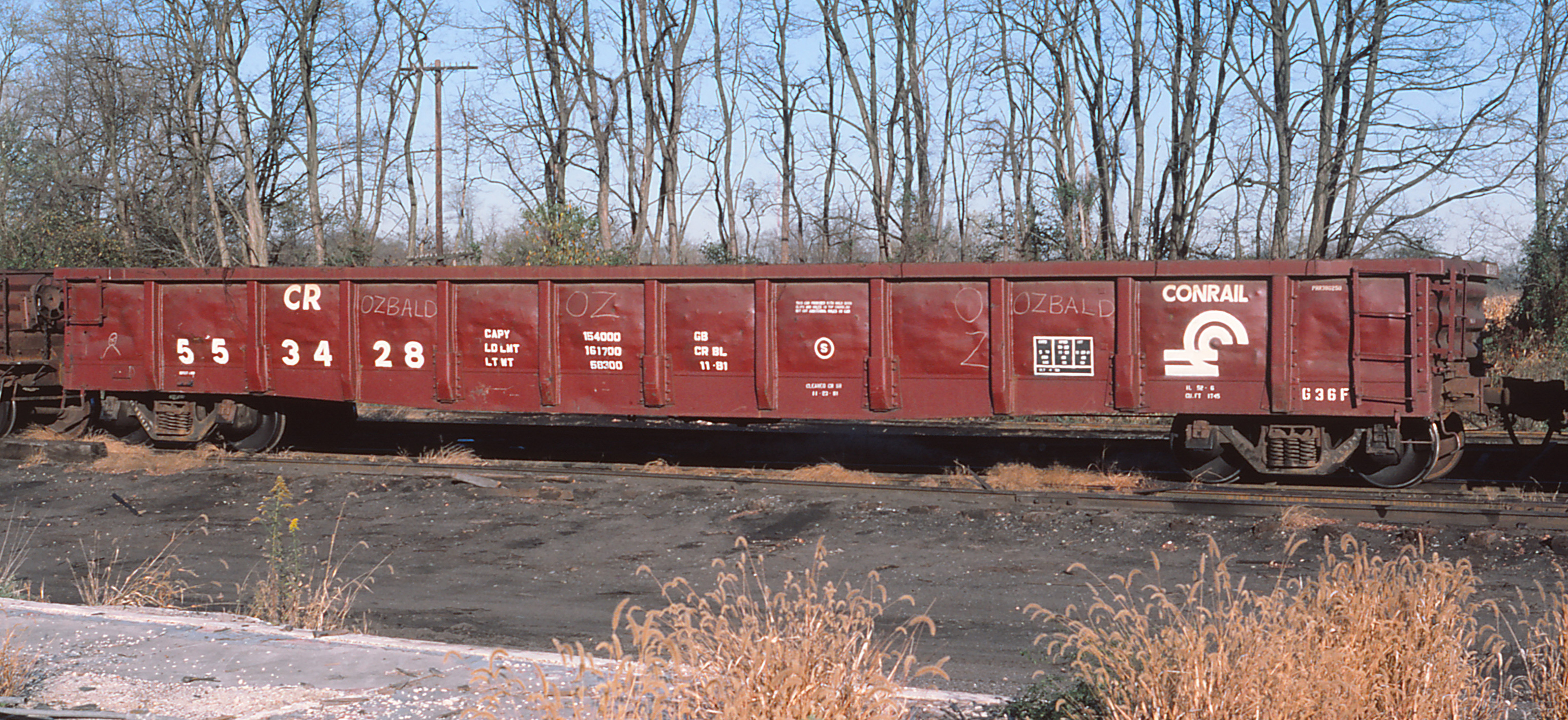 CR 553428 is seen at Hagerstown, MD on 11/3/84. Car is ex PC 553428/PRR 386250 and was painted CR-BL 11-81 (Cleaned CR SR 11-23-81).
