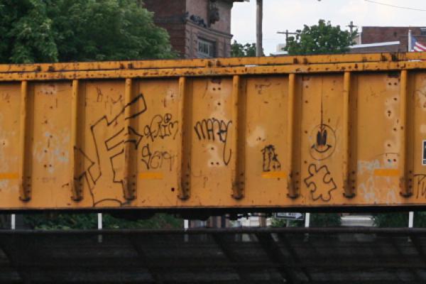 CR 55594 is seen in the consist of NS 36A at Altoona, PA on 6/29/25. Car is ex PC 598690, built 6-72 by Fruehauf and was painted CRBL 3-89.