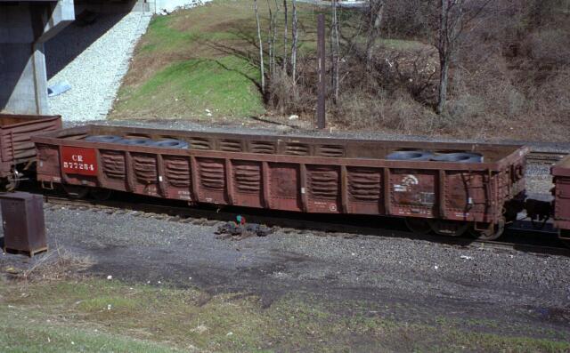 Car is ex PC and is seen here in April 1996 in coil steel service on Conrail train PIMO.