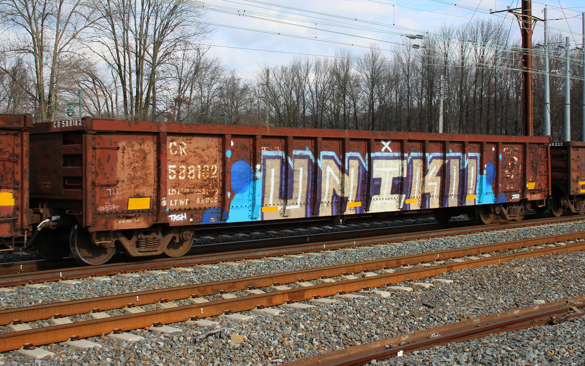 CR 588182 is seen in the consist of NS 36A at Newark, DE on 12/5/20. Car is ex CR 580885/PC 580885 and was built 1-72 as a PC G47 class gon.