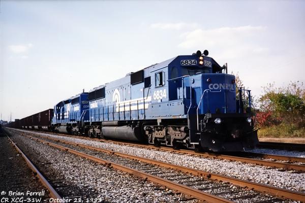 At 2:56 on this Saturday afternoon, Conrail Dash-8s 6059 and 6090, along with GP38-2 8277, haul 123 cars (39x84 for 7,568 tons) southbound under wire towards Edgemoor, DE. The train came east on Conrail's Harrisburg Line to CP-River, hung the right at the wye, went up over the High Line in Philadelphia, and entered Amtrak at Phil interlocking. He will leave Amtrak at Bell interlocking, just north of Edgemoor.