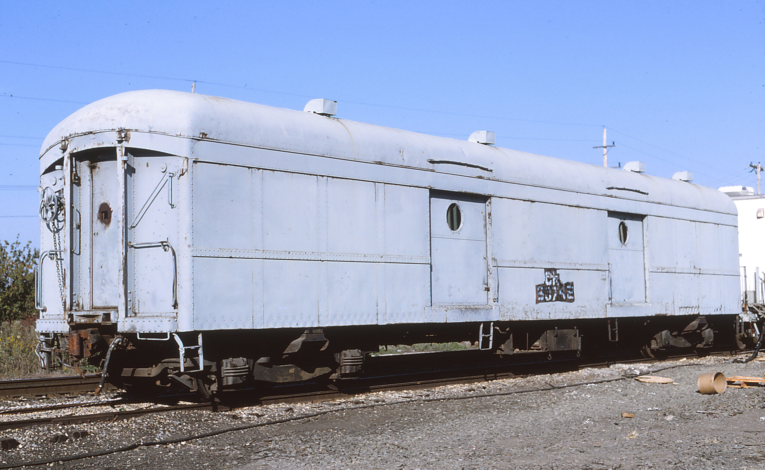 PRR MOW baggage car at Williamsport, PA 4/25/1976