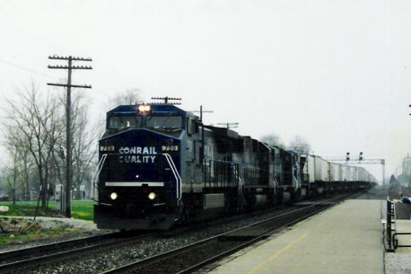 Lock 10 in Cranesville NY a few miles east of Amsterdam NY is one of the most accessible locks for cross-canal train watching. This is how it looked in 1994 before a devastating flood in 2006 knocked it out of operation for several years. It is back in operation, but missing the stand of cottonwood trees. So much for sitting in the shade waiting for the next train. In 1994 the last section of the West Shore railroad was still operating to service a nearby quarry. Here C40-8W 6096 and an unidentifiable SD60M (55?3) lead an eastbound freight.