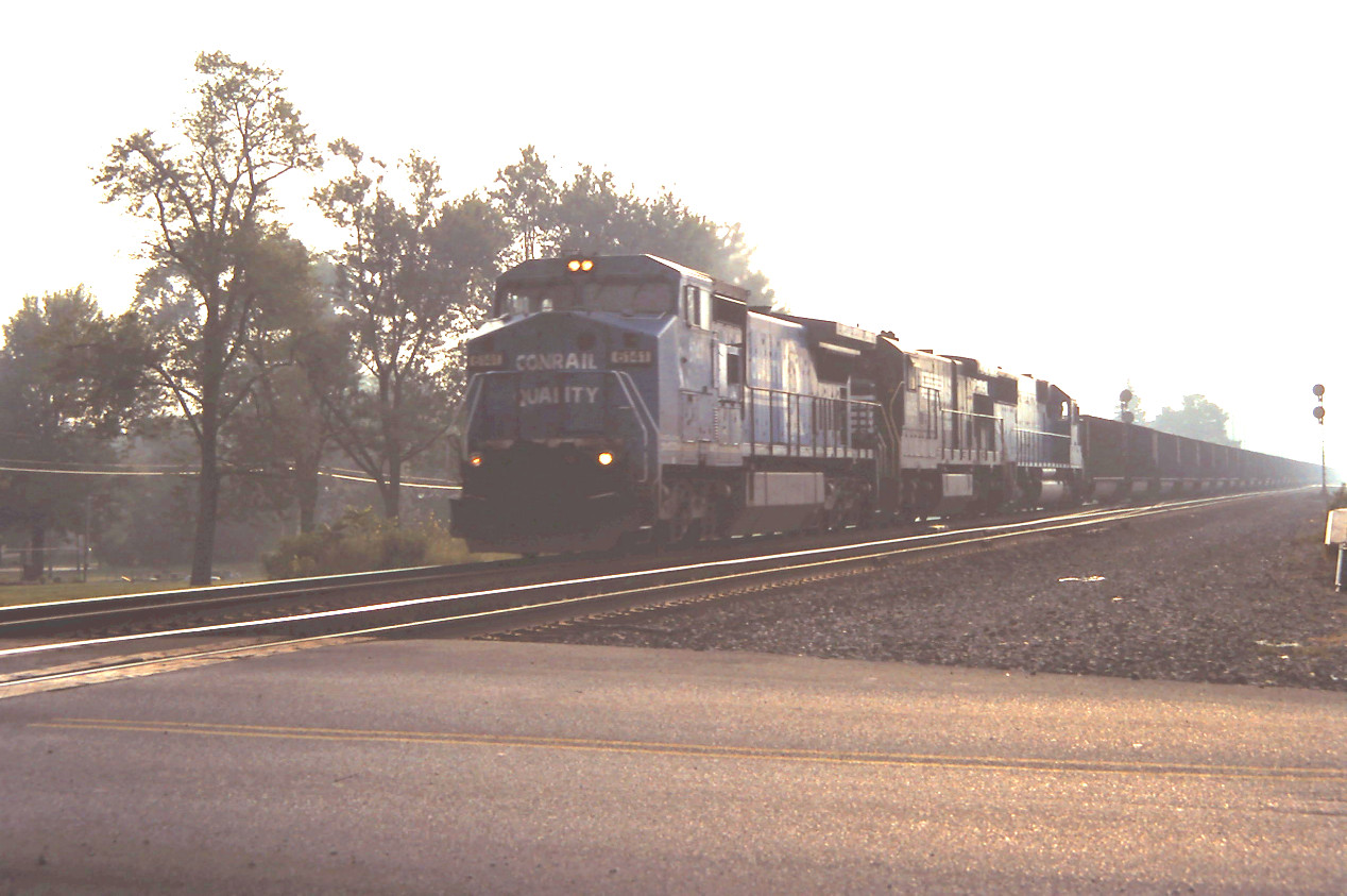 CR 6141, NS 8009, and CR EMD leads unit train UNW-27 at Waterloo, IN on August 15, 1998. This train was destined for the Nipsco power plant in Wheatfield, IN and had a solid train of NYC lettered cars(ex CR, nee SFIX).