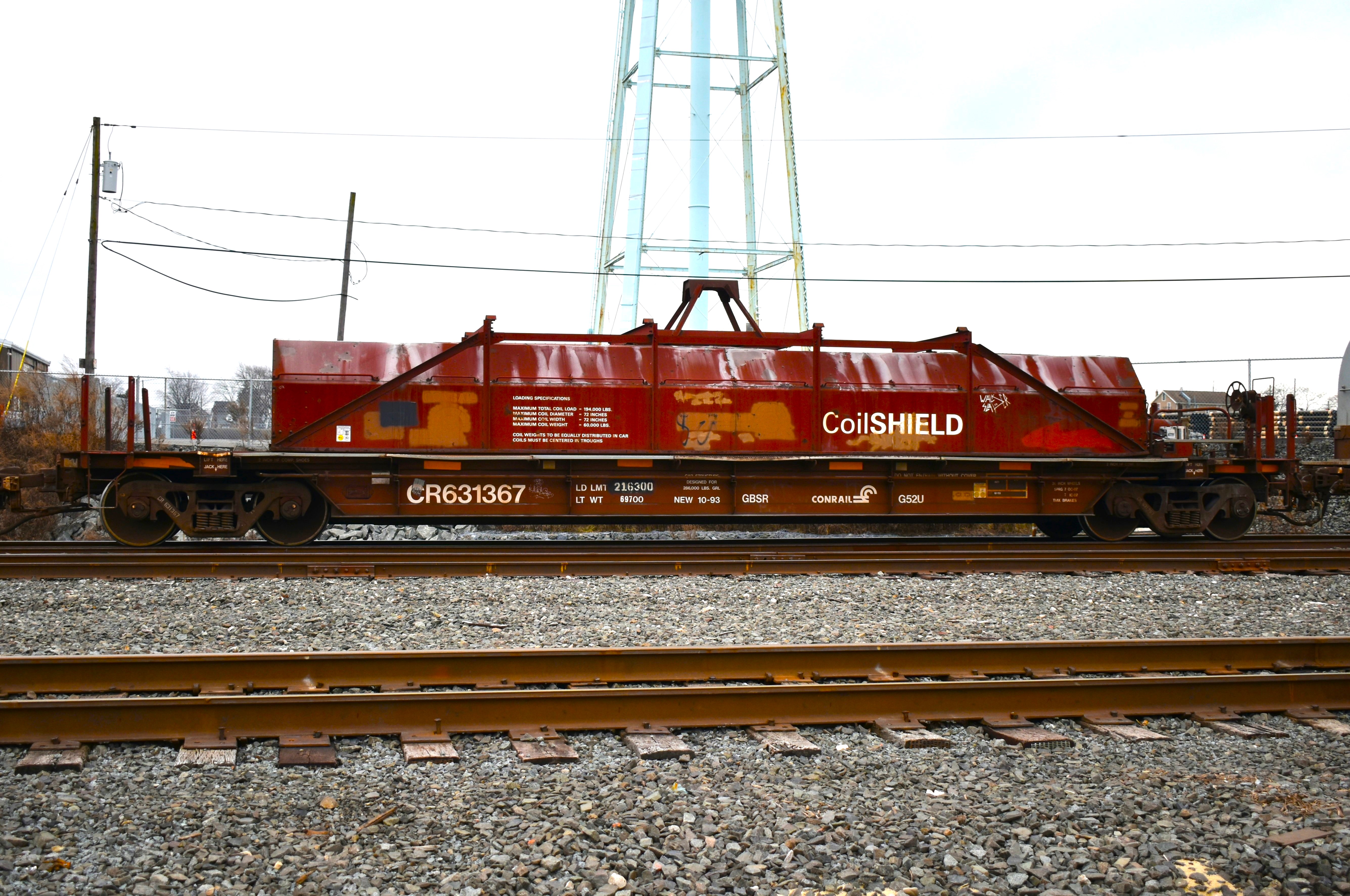 Conrail CoilSHIELD car #CR 631367. Class G52U. South Plainfield, NJ yard. February 1, 2-24