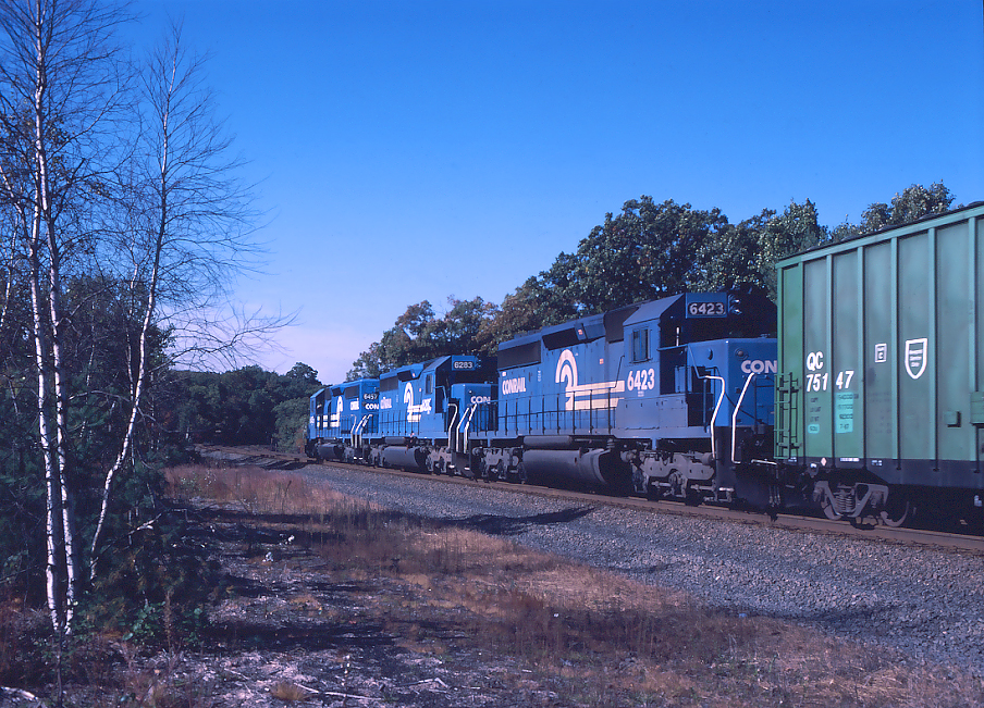 CR 6415 leads an out of place B36-7 on a ZBB ore train at Birdsboro PA in 1992