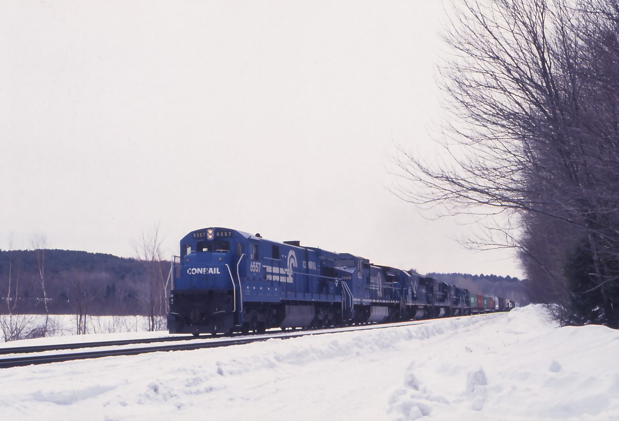 C30-7A 6557 leads a healthy bunch on FRSE in Washington, MA. on March 20, 1993.