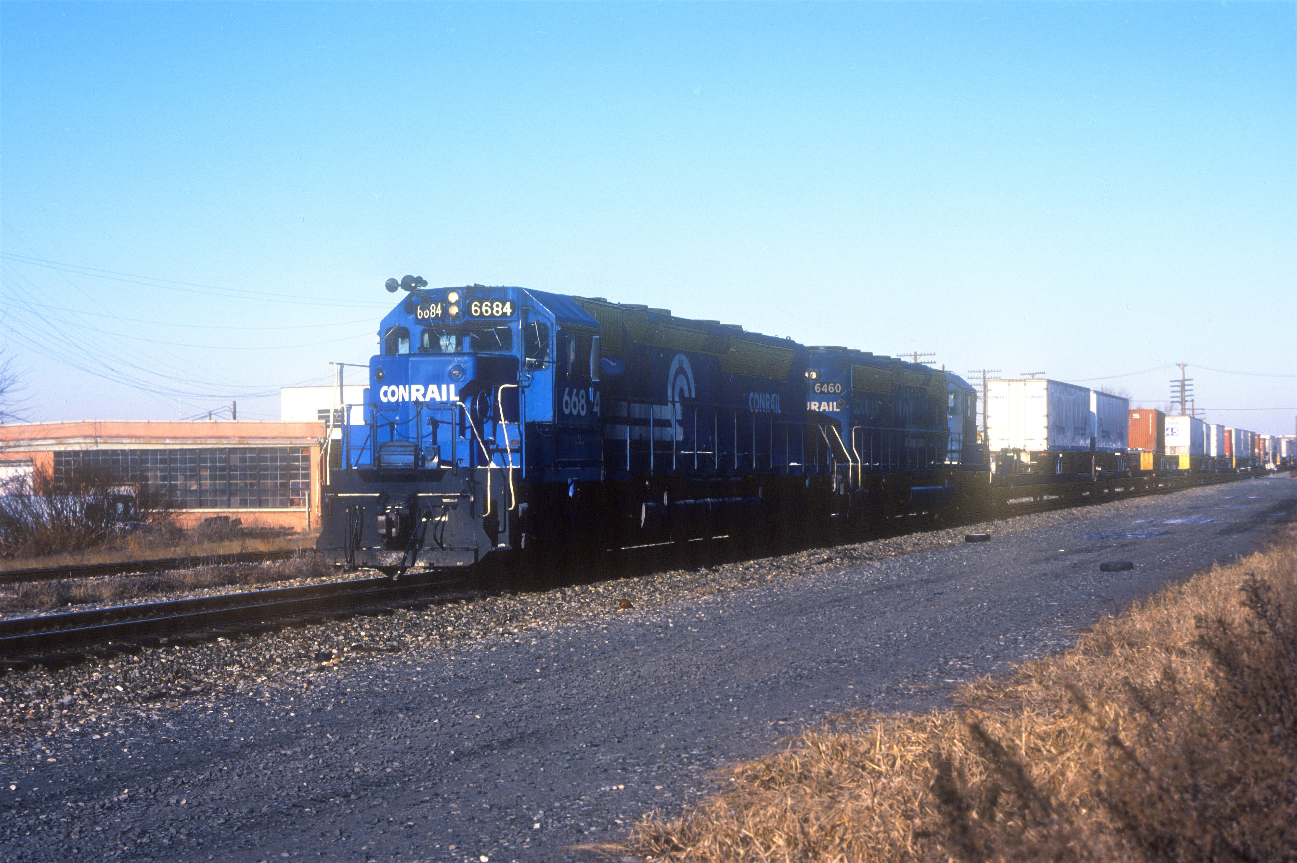 Southbound CR TV-10 with SDP45 6684 and SD40-2 6460 at Ridgefield Park, NJ 12/30/1983