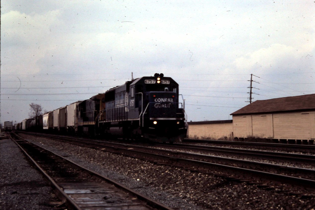 CR 6757and a CSX GE leads a eastbound freight at Bryan, OH back in May 1999. Chris Howe photo
