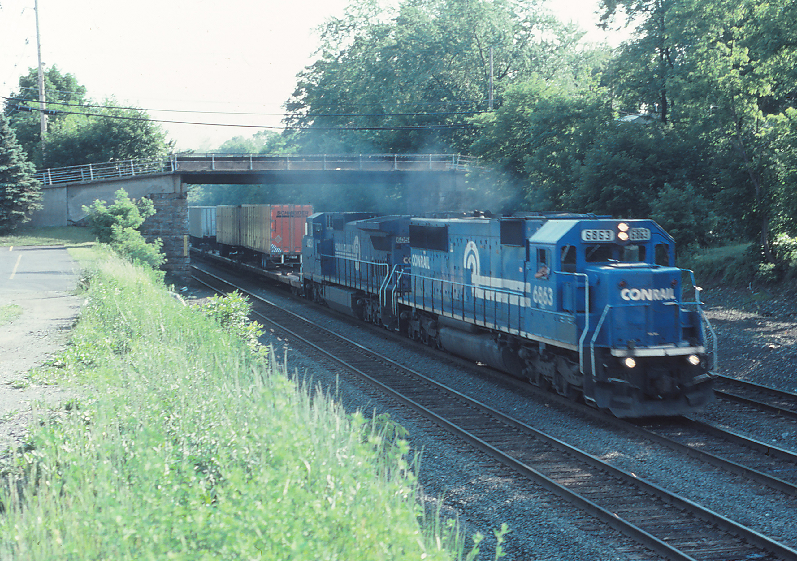 CR 6863 & 6050 are seen leading TV-22 east at Bellwood, PA on 6/15/96 at 5:59p.