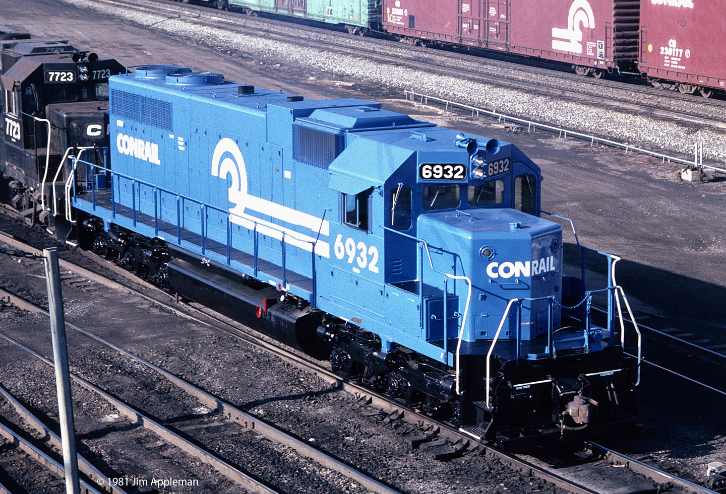 Fresh out of the paint shop, one of Conrail's 35 ex-PC SD38s.